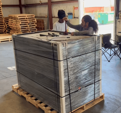 Your solar panels are carefully packaged with utmost attention to detail, using three layers of industrial wrap and six metal bands securely strapped to solid pallets, ensuring that your solar panels arrive in perfect condition, ready for installation.